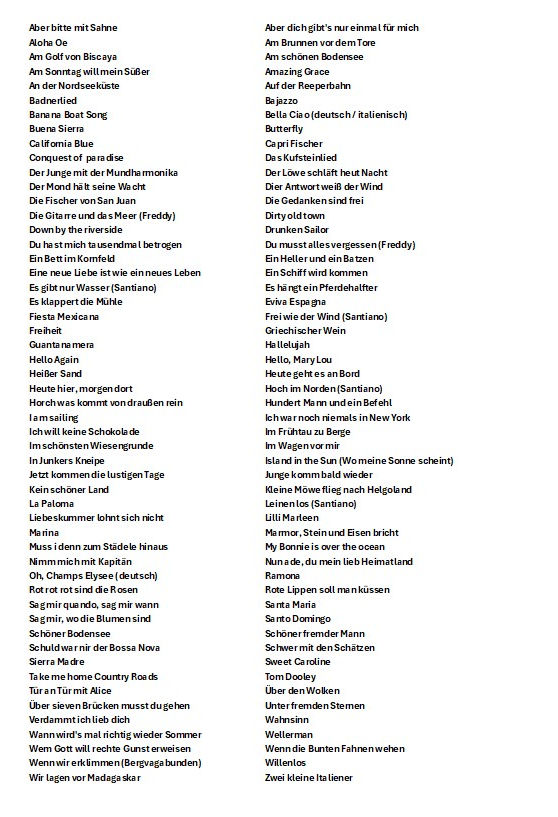 Unsere Lieder /Auszug aus unserem Repertoire